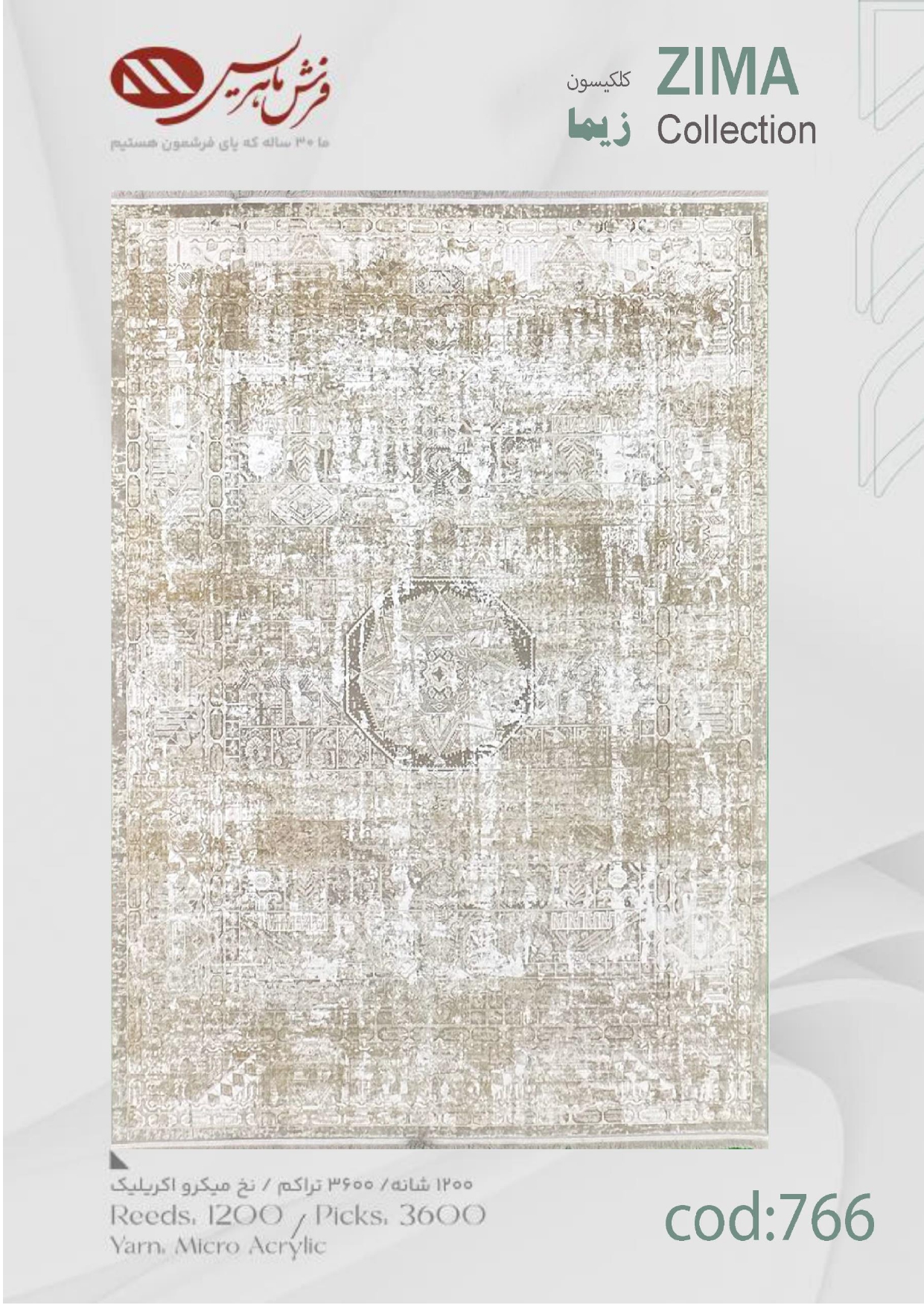 فرش ماشینی مدل زیما کد 766 با طرح زیبا و دل انگیز خود به خانه شما اصالتی از هنر ایرانی و فرهنگی اصیل داده و زیبایی آنرا نیز چند برابر می کند .
