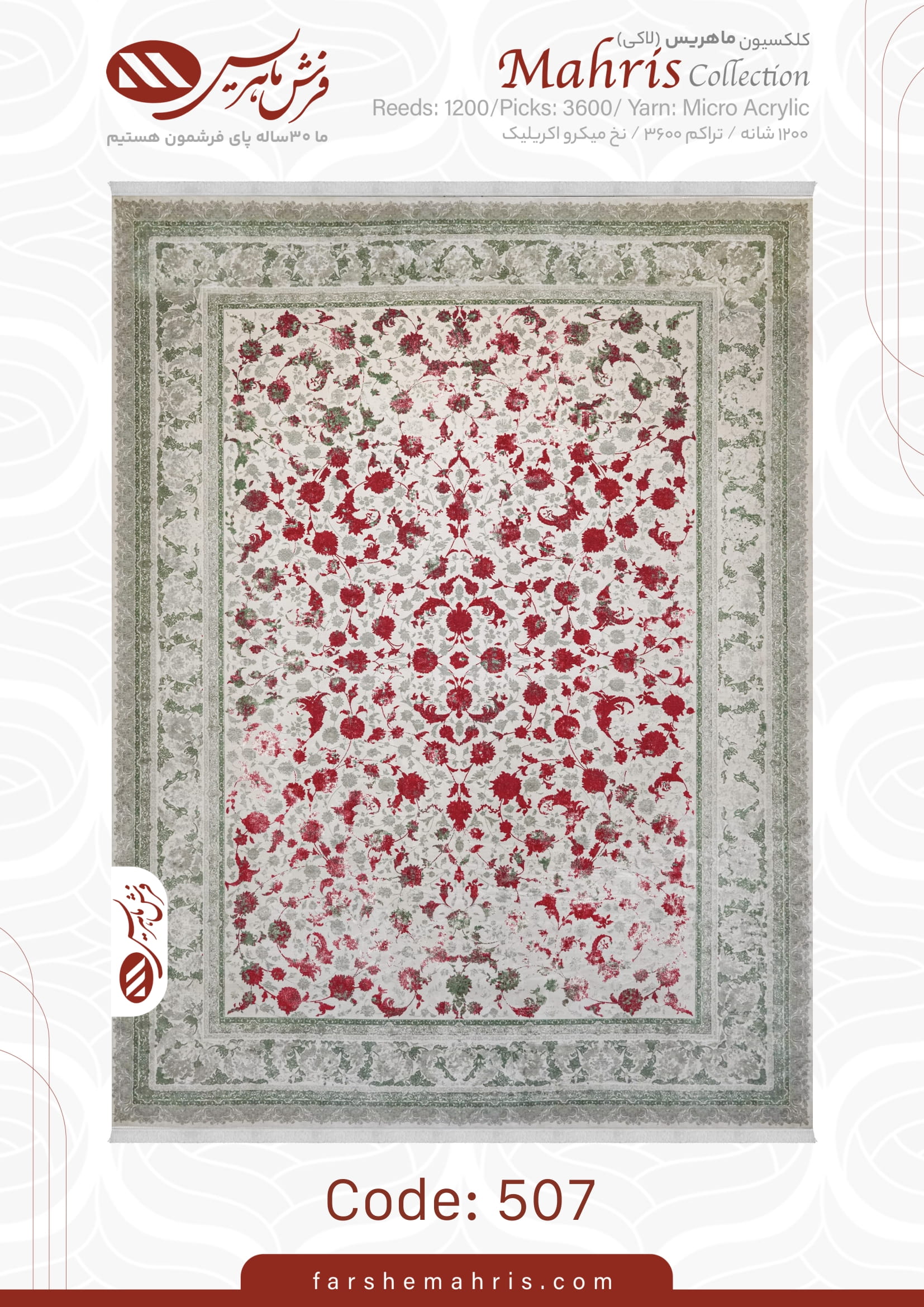 فرش ماشینی مدل ماهریس کد 507 با طرح زیبا و دل انگیز خود به خانه شما اصالتی از هنر ایرانی و فرهنگی اصیل داده و زیبایی آنرا نیز چند برابر می کند .