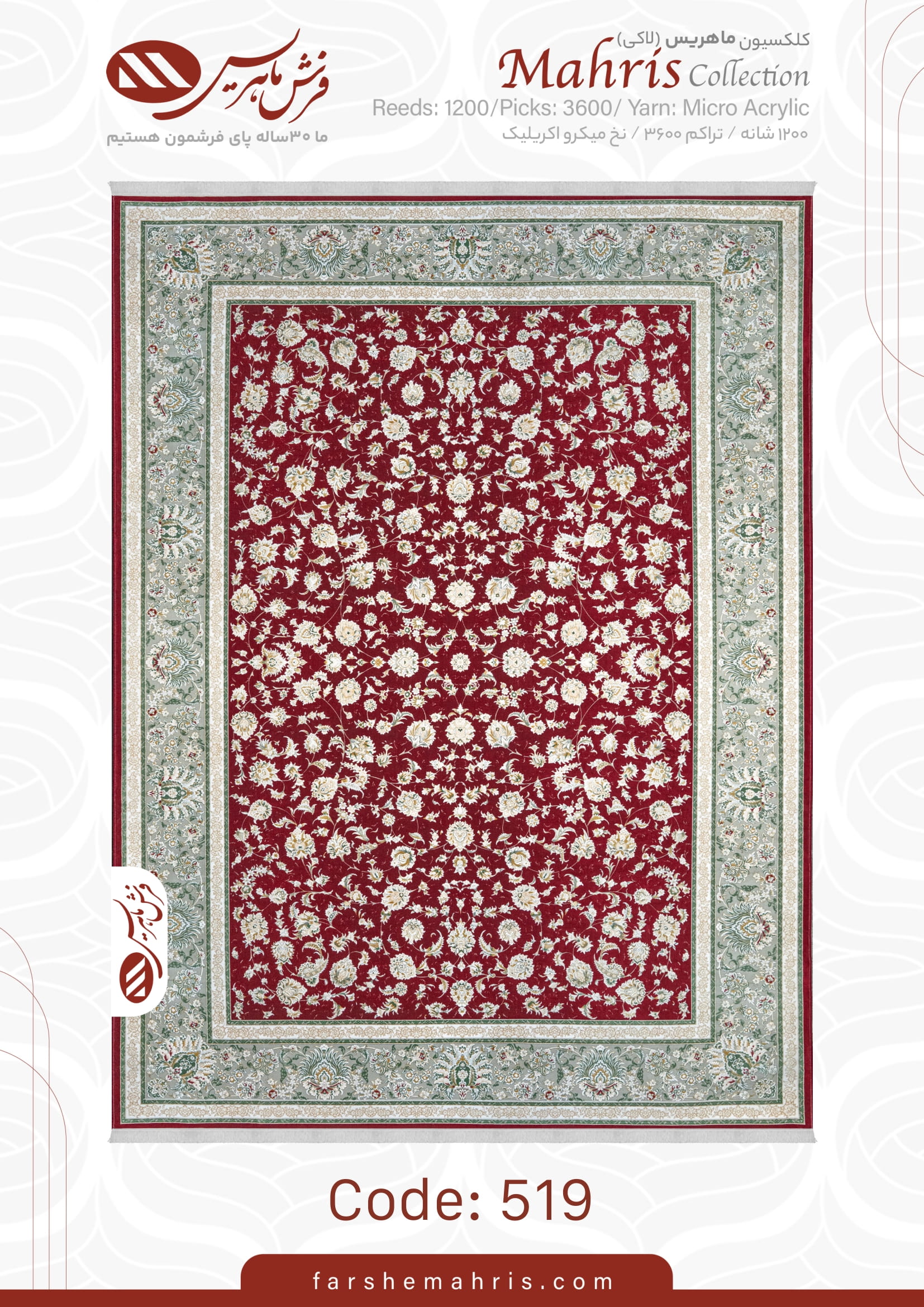 فرش ماشینی مدل ماهریس کد 519 با طرح زیبا و دل انگیز خود به خانه شما اصالتی از هنر ایرانی و فرهنگی اصیل داده و زیبایی آنرا نیز چند برابر می کند .
