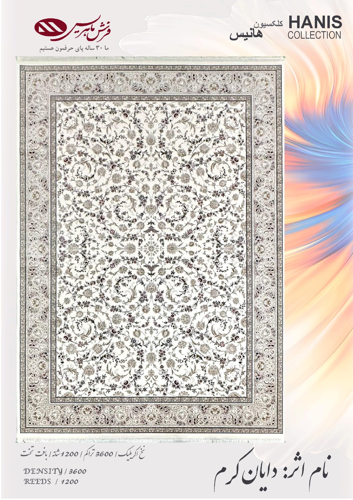 فرش ماشینی مدل هانیس نام اثر دایان کرم با طرح زیبا و دل انگیز خود به خانه شما اصالتی از هنر ایرانی و فرهنگی اصیل داده و زیبایی آنرا نیز چند برابر می کند .