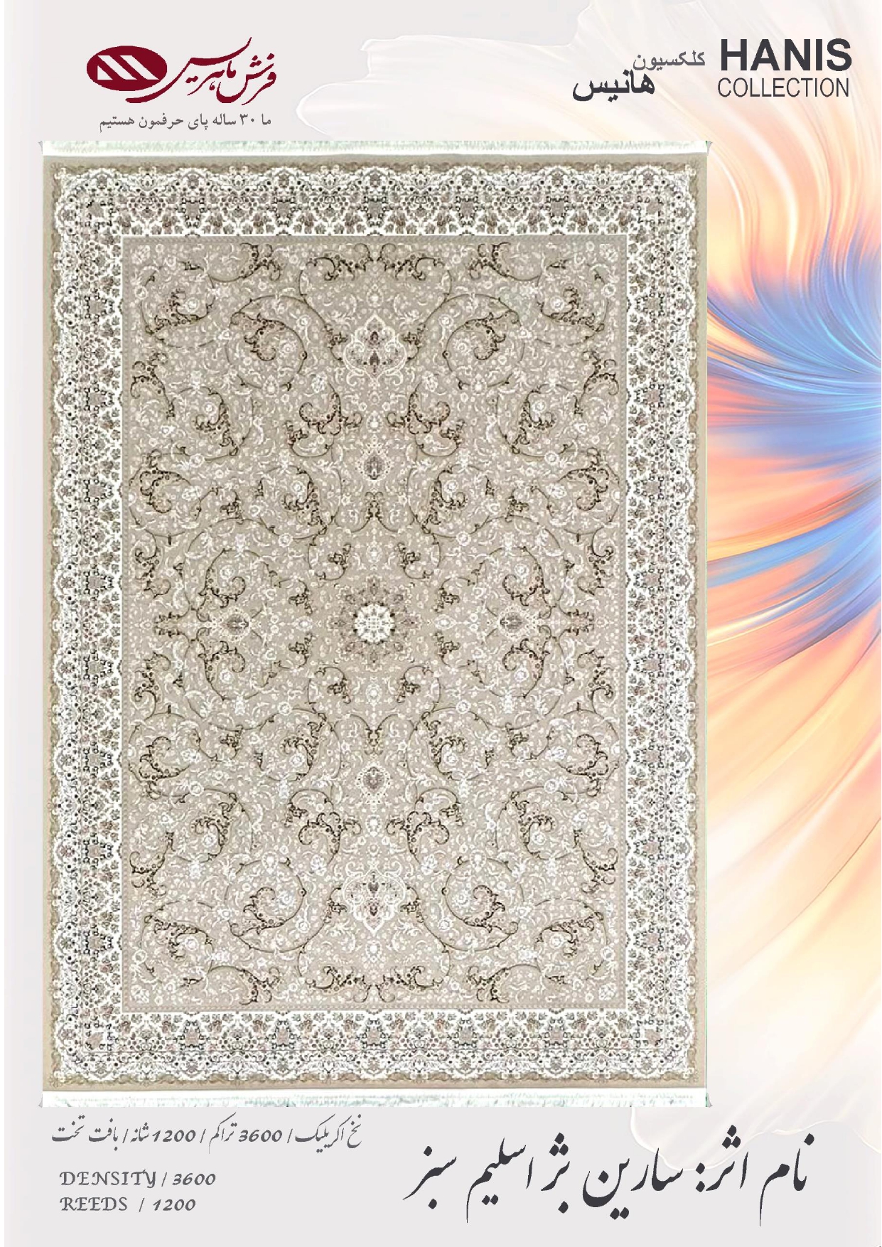 فرش ماشینی هانیس نام اثر : سارین بژ اسلیم سبز