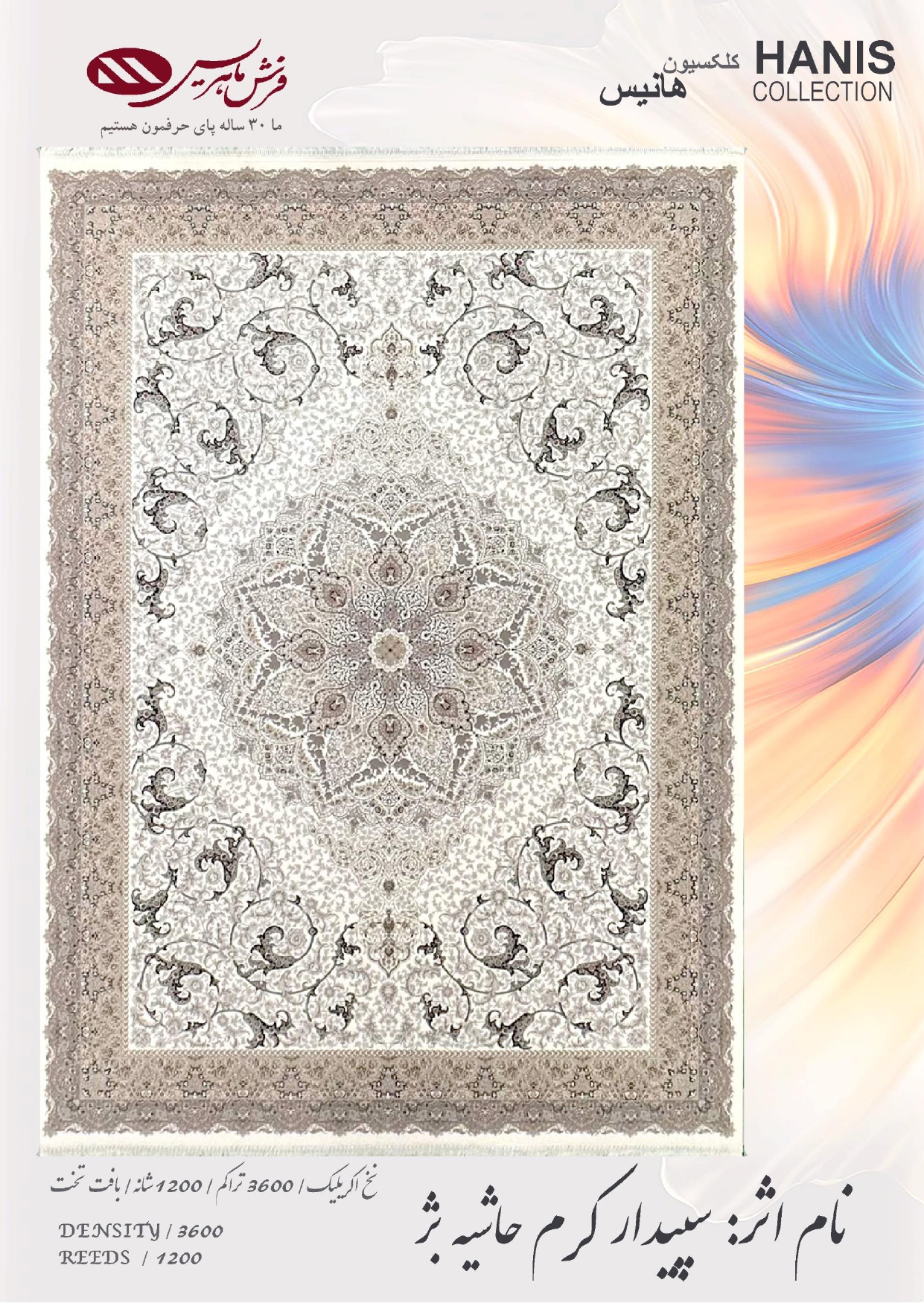 فرش ماشینی مدل هانیس نام اثر سپیدار کرم حاشیه بژ با طرح زیبا و دل انگیز خود به خانه شما اصالتی از هنر ایرانی و فرهنگی اصیل داده و زیبایی آنرا نیز چند برابر می کند .