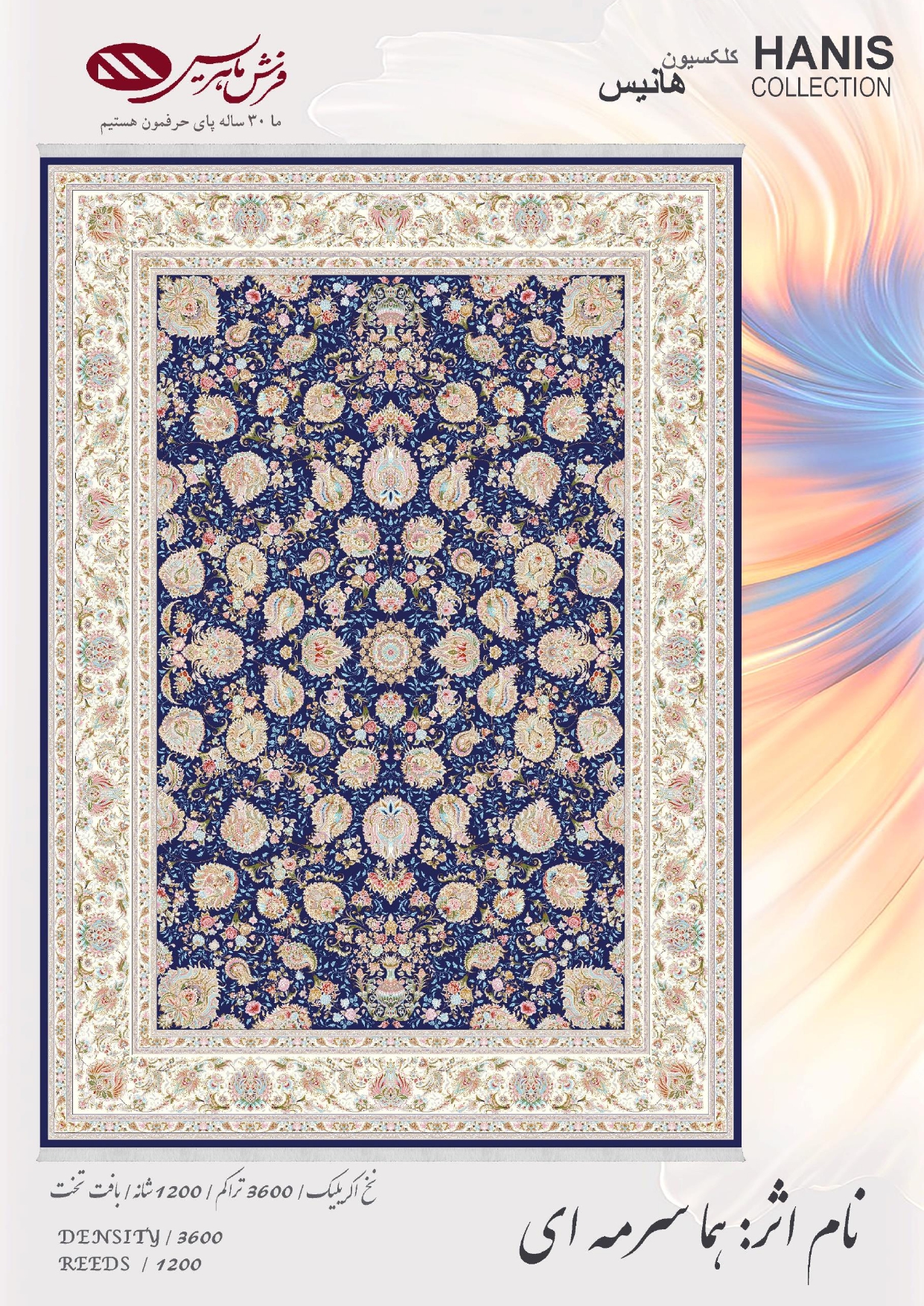 فرش ماشینی مدل هانیس نام اثر هما سرمه ای با طرح زیبا و دل انگیز خود به خانه شما اصالتی از هنر ایرانی و فرهنگی اصیل داده و زیبایی آنرا نیز چند برابر می کند .
