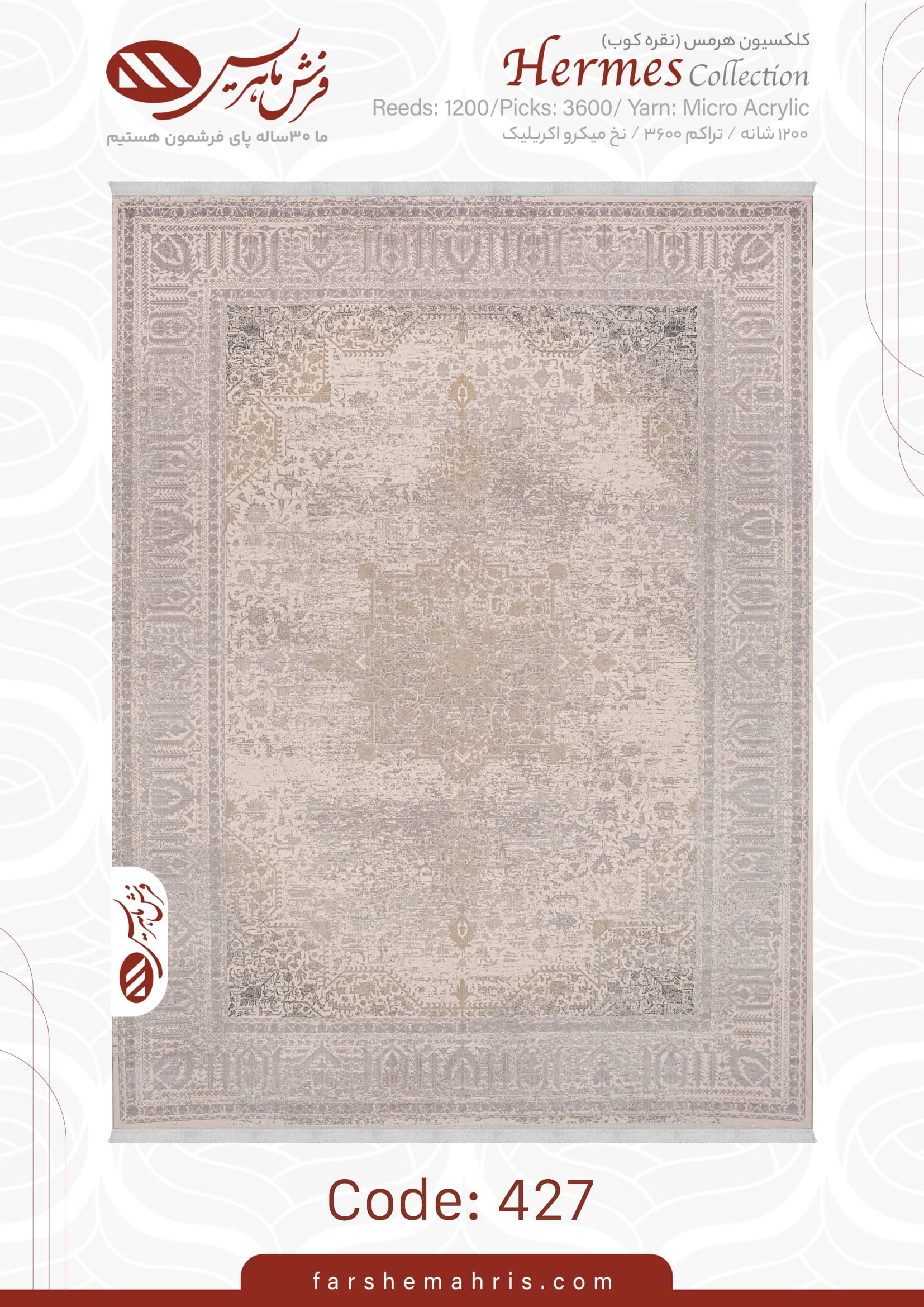 فرش ماشینی مدل هرمس کد 427 با طرح زیبا و دل انگیز خود به خانه شما اصالتی از هنر ایرانی و فرهنگی اصیل داده و زیبایی آنرا نیز چند برابر می کند .