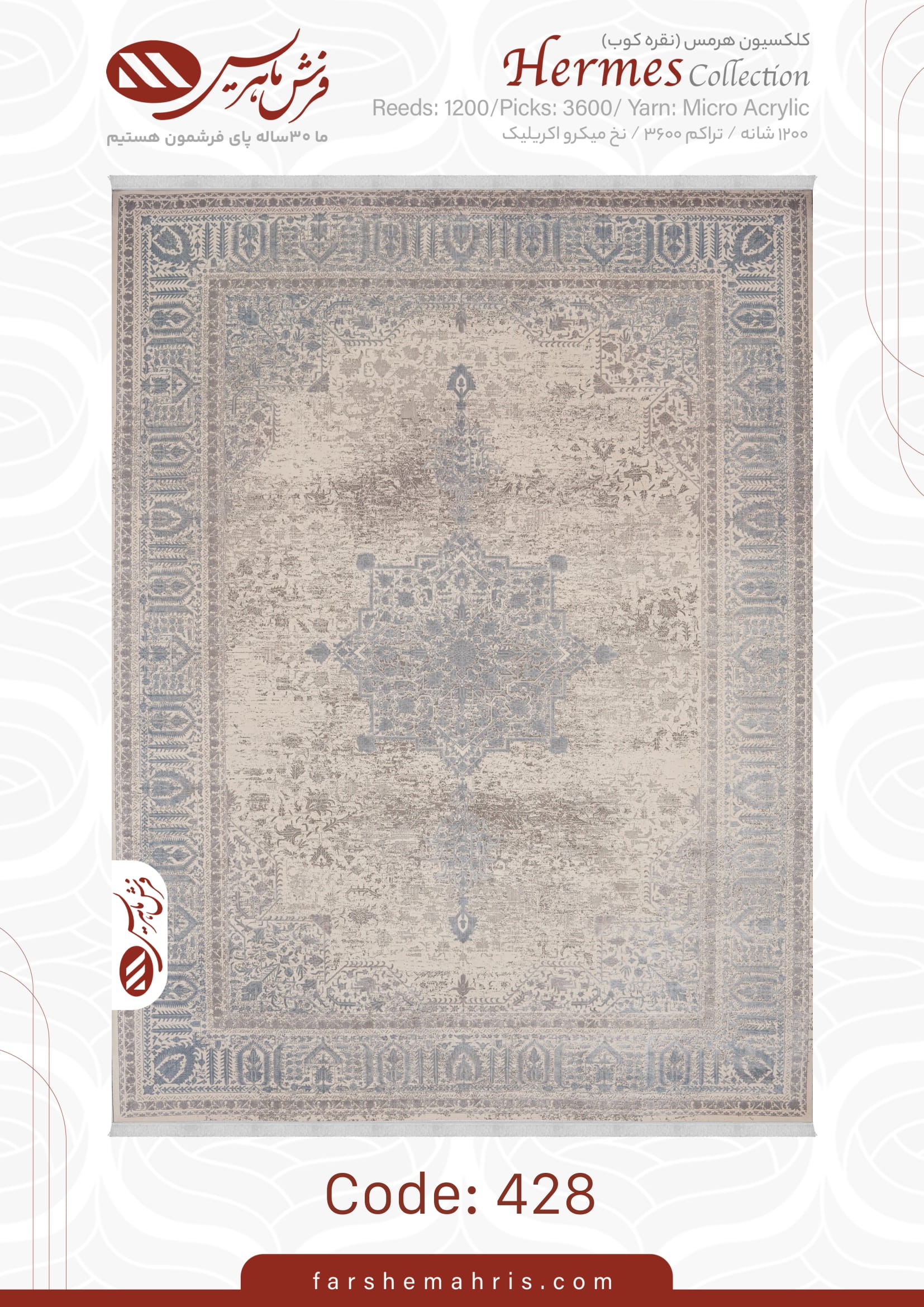 فرش ماشینی مدل هرمس کد 428 با طرح زیبا و دل انگیز خود به خانه شما اصالتی از هنر ایرانی و فرهنگی اصیل داده و زیبایی آنرا نیز چند برابر می کند .