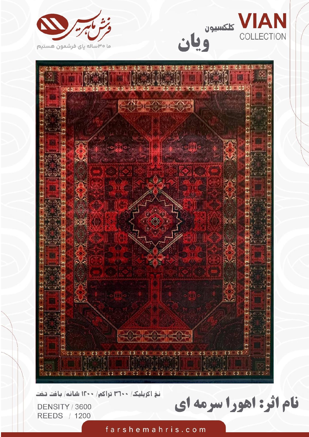 - تراکم طول فرش : 3600 تراکم