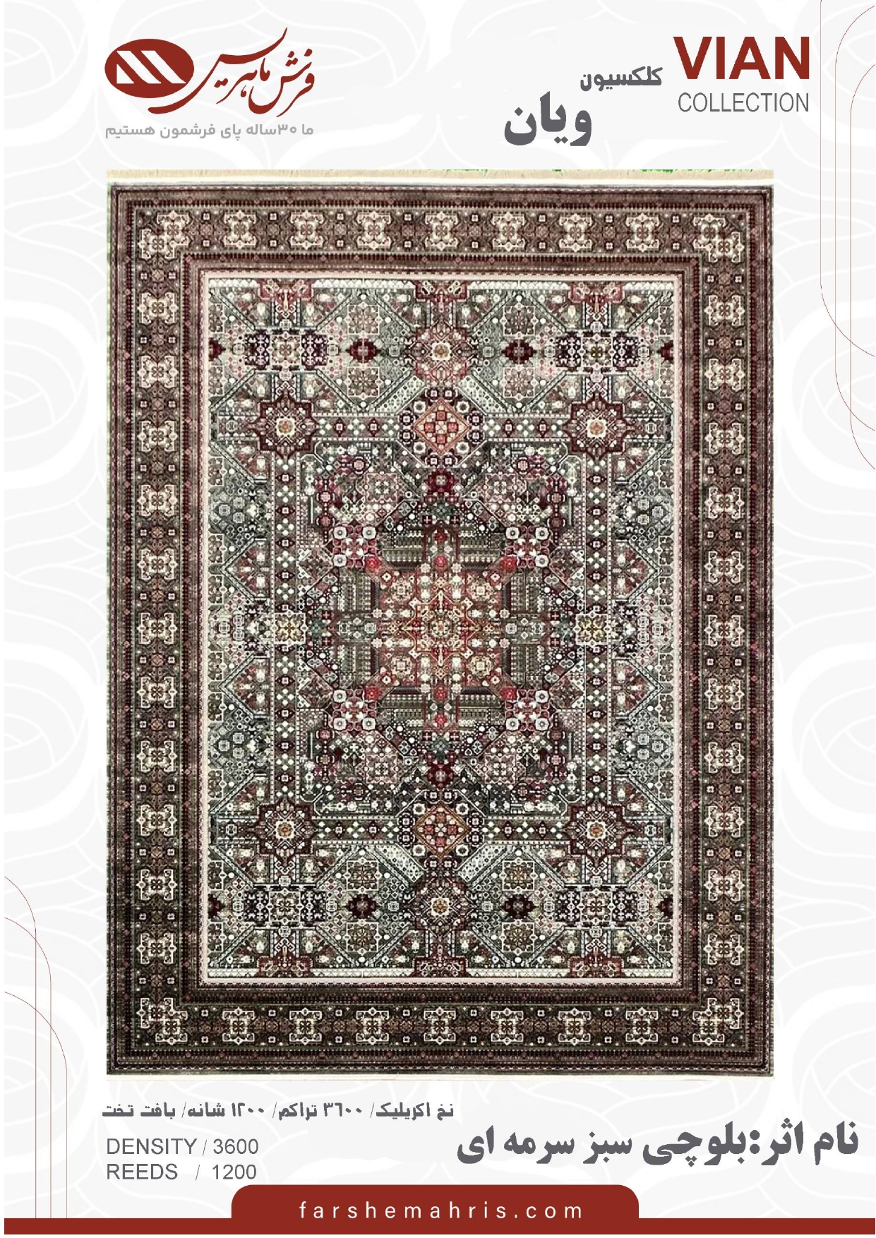 - تراکم طول فرش : 3600 تراکم