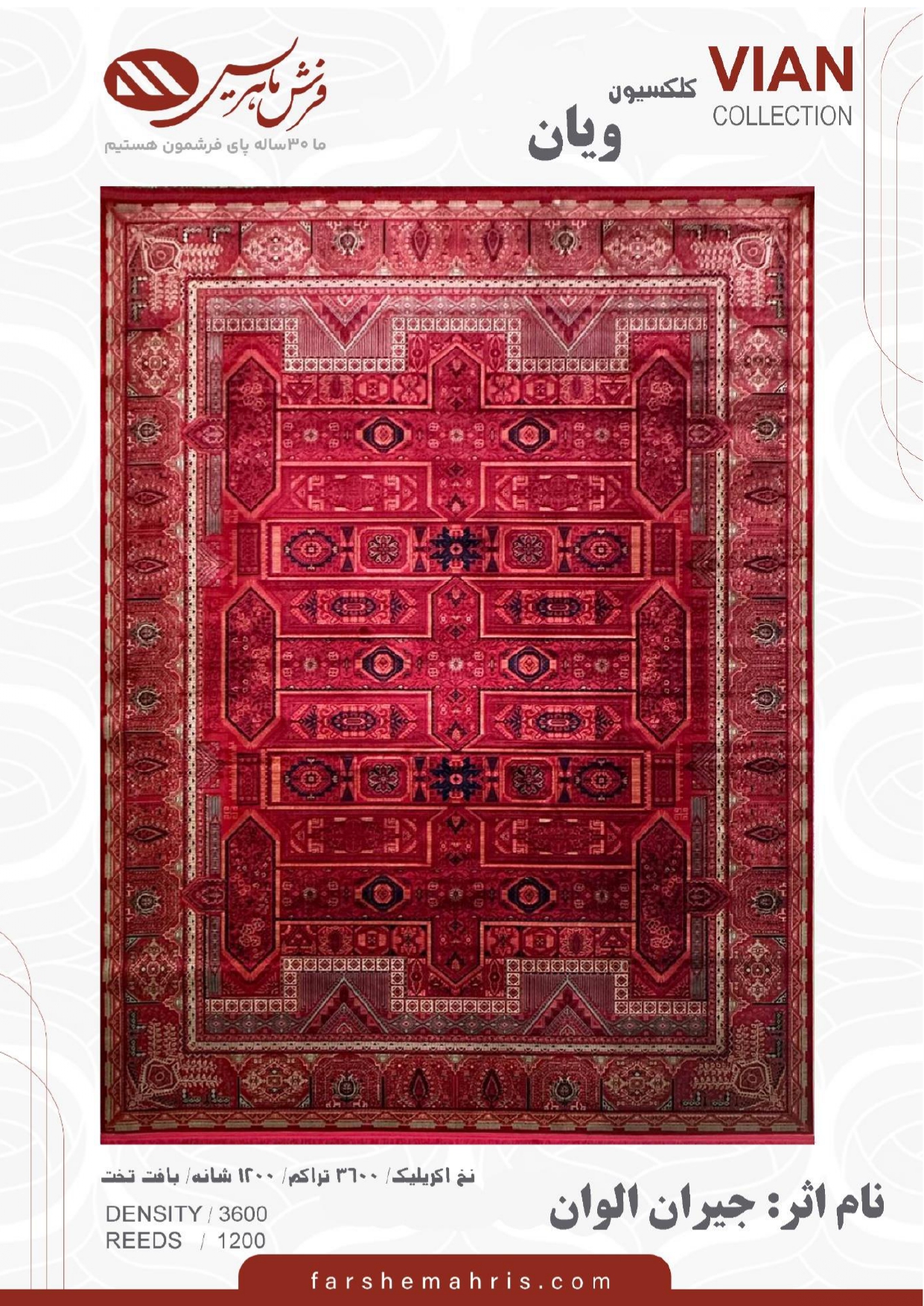 فرش ماشینی مدل ویان نام اثر جیران الوان با طرح زیبا و دل انگیز خود به خانه شما اصالتی از هنر ایرانی و فرهنگی اصیل داده و زیبایی آنرا نیز چند برابر می کند .