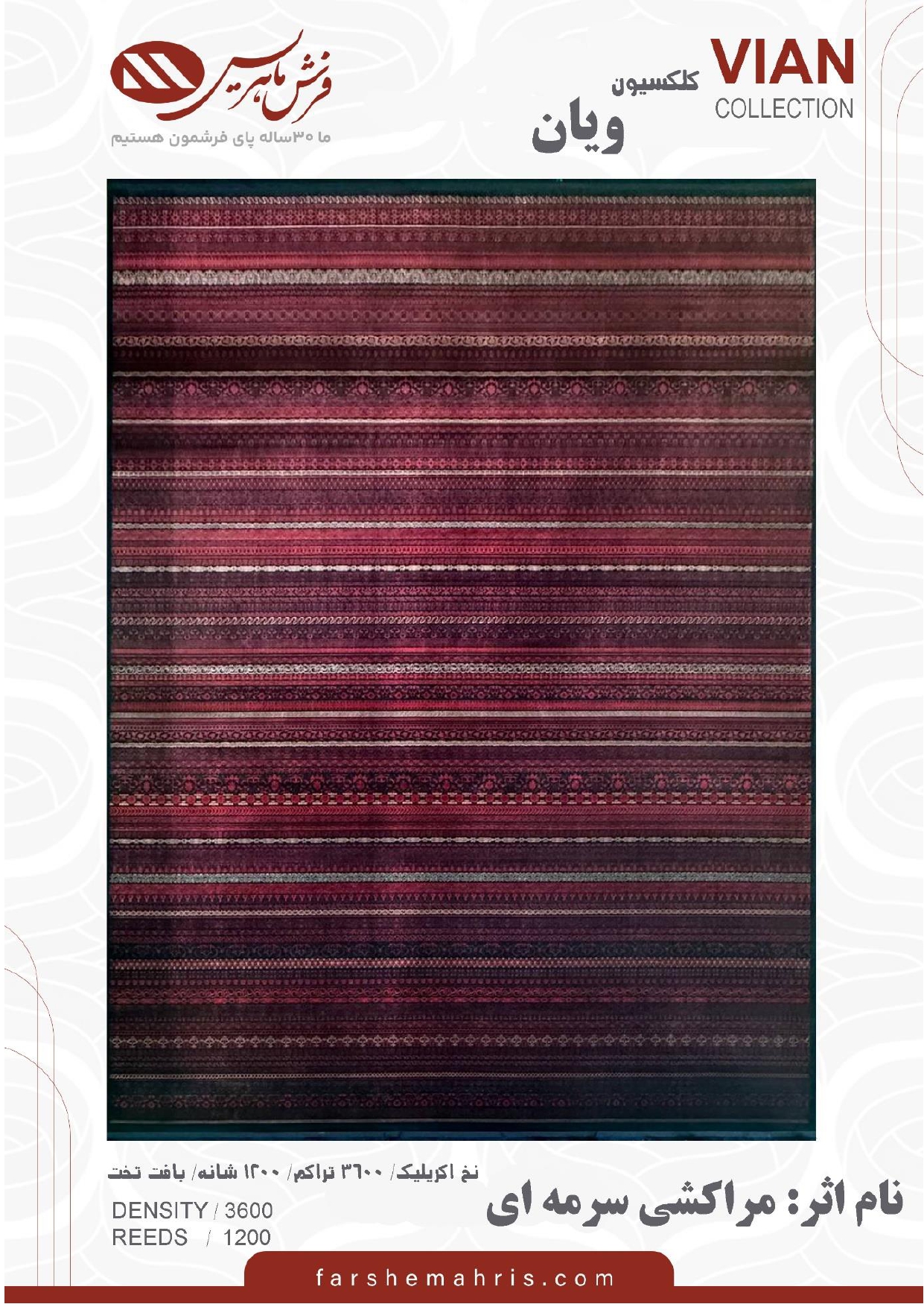 - تراکم طول فرش : 3600 تراکم