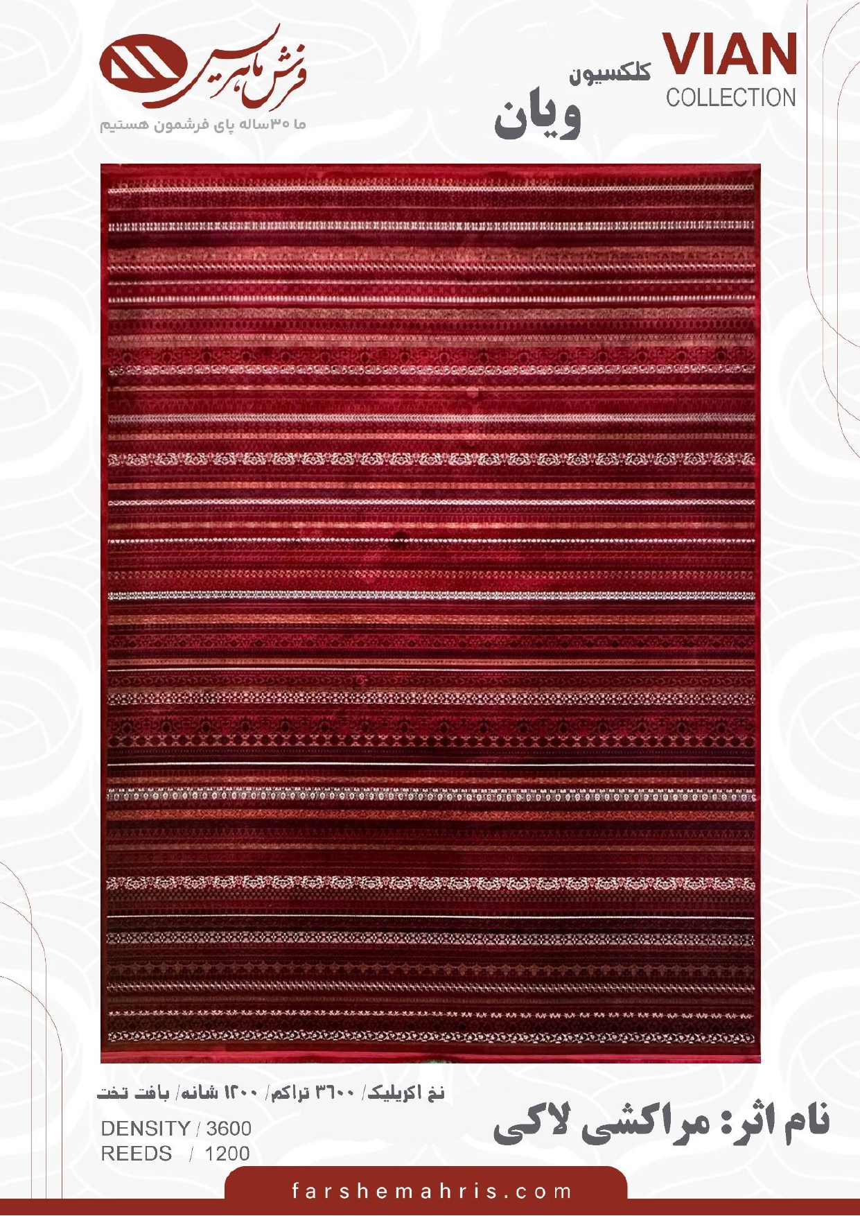 فرش ماشینی مدل ویان نام اثر مراکشی لاکی با طرح زیبا و دل انگیز خود به خانه شما اصالتی از هنر ایرانی و فرهنگی اصیل داده و زیبایی آنرا نیز چند برابر می کند .